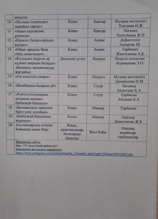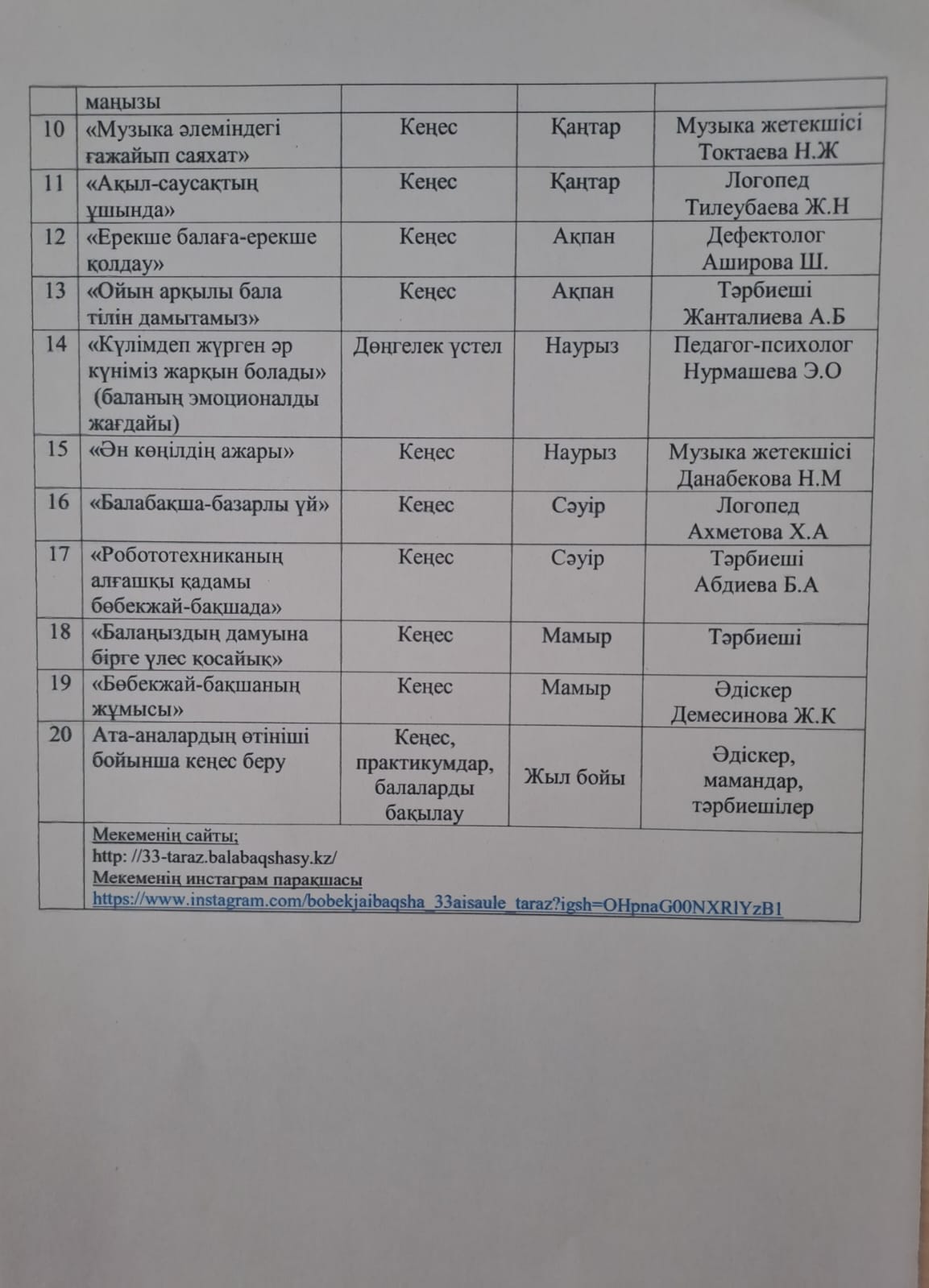 Жоспар » №33 «Айсәуле» бөбекжай-бақшасы»